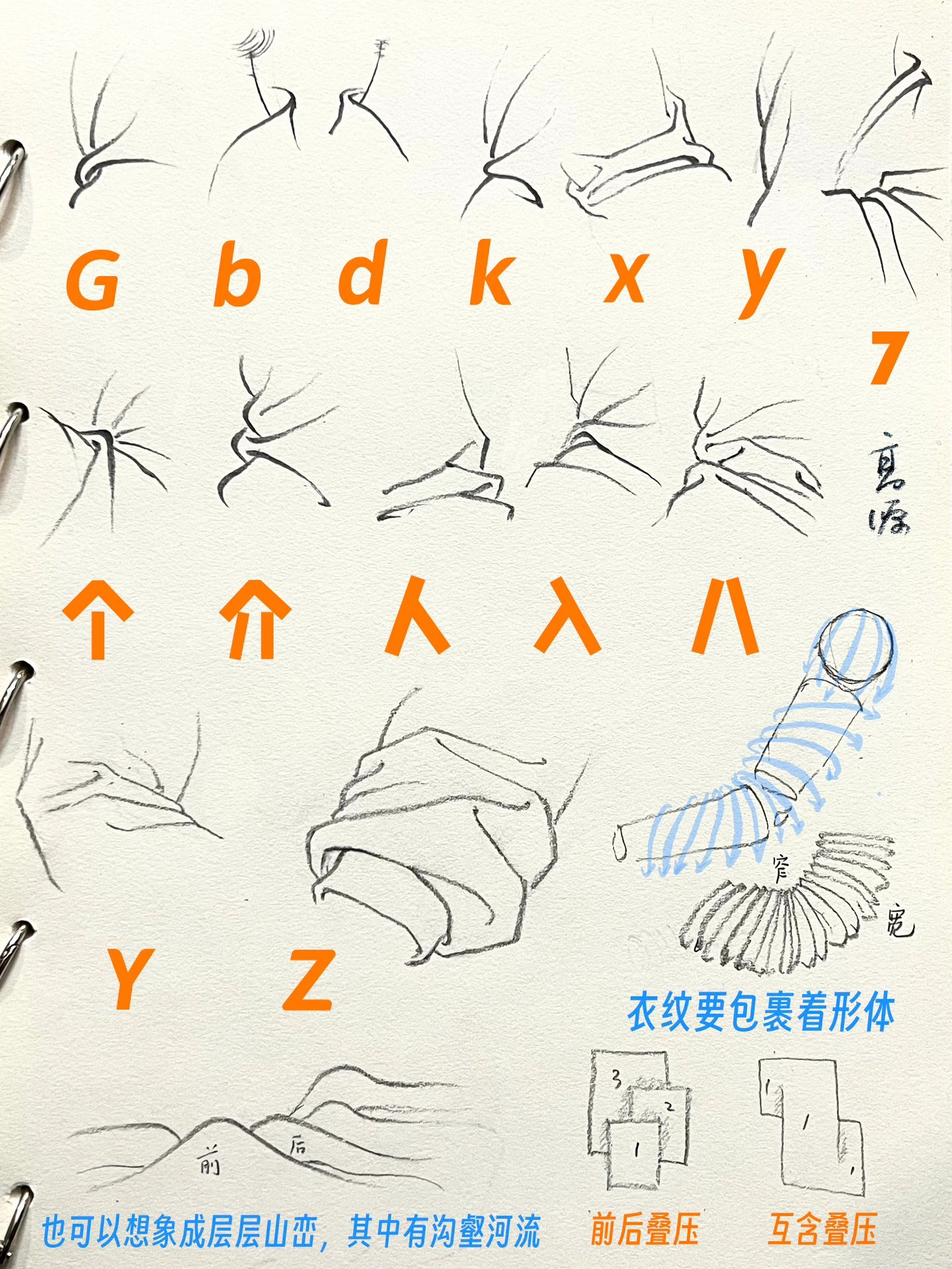 1.可以用常見的字母來進(jìn)行組合,方便我們一目了然的認(rèn)識(shí)衣紋的走向,希望大家活學(xué)活用,舉一反三。