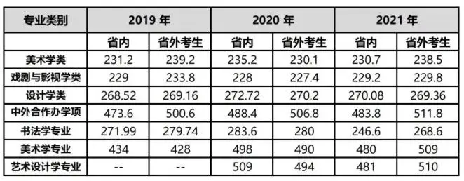 1、美術學類、戲劇與影視學類、設計學類、書法學、美術學、藝術設計學、藝術管理文化課最低控制分數線為350分。