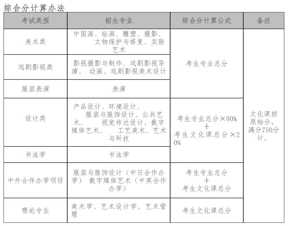 產品設計、環境設計、服裝與服飾設計、公共藝術、視覺傳達設計、數字媒體藝術、工藝美術、藝術與科技、書法學、服裝與服飾設計(中日合作辦學)、數字媒體藝術(中英合作辦學)錄取專業課總分高的考生;如專業課總分并列,按照語文、數學、外語分數優先錄取。